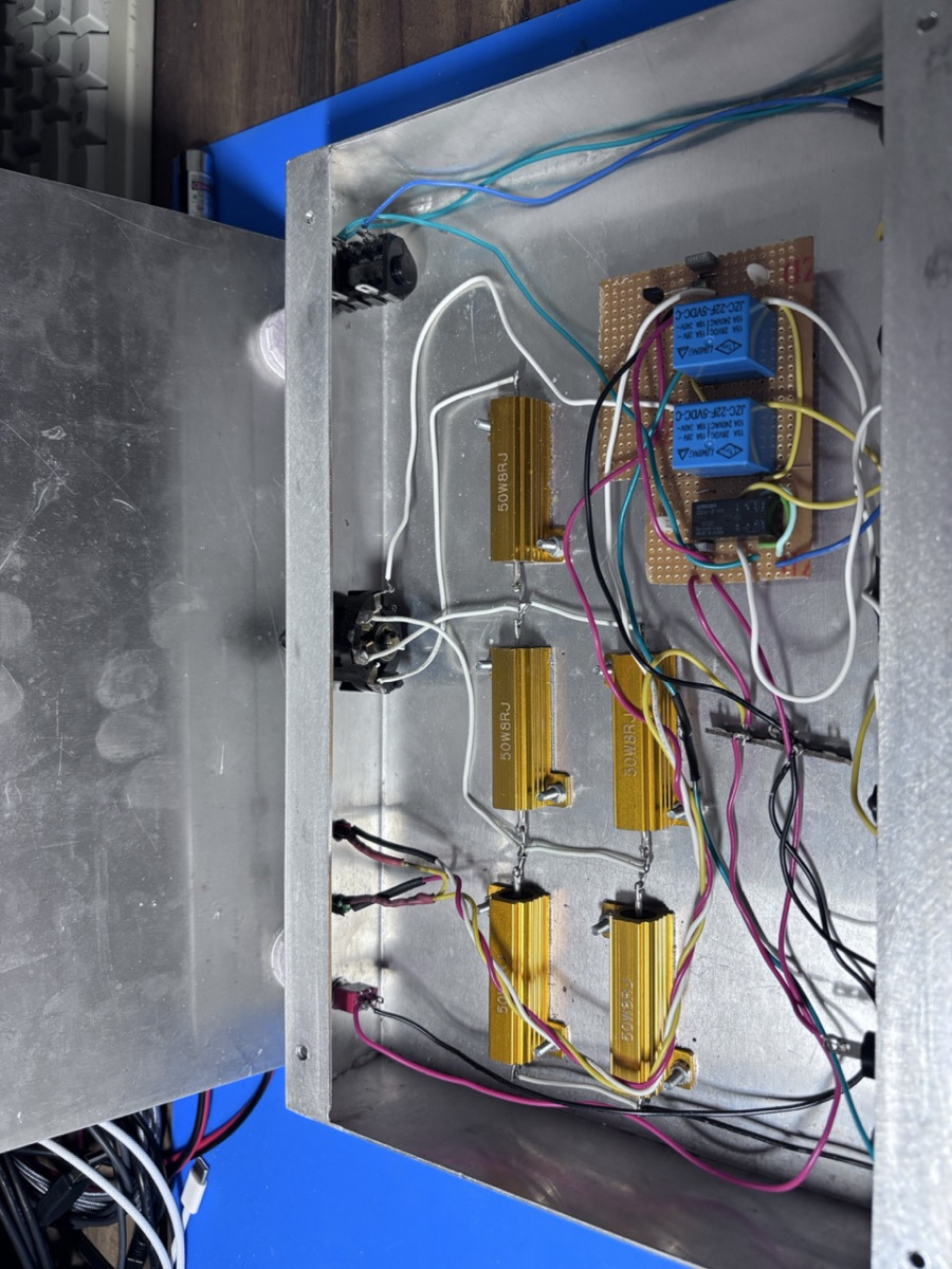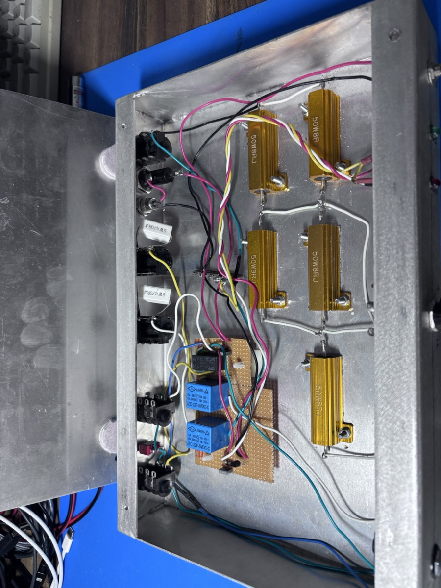 There was some old computer CPU heatsink paste laying around to use for the resistors and the I could wire them up. I did the rest of the wiring on stripboard with solid core wire. I will most likely make a PCB for this and swap it out or make a V2 and sell this one, one day.