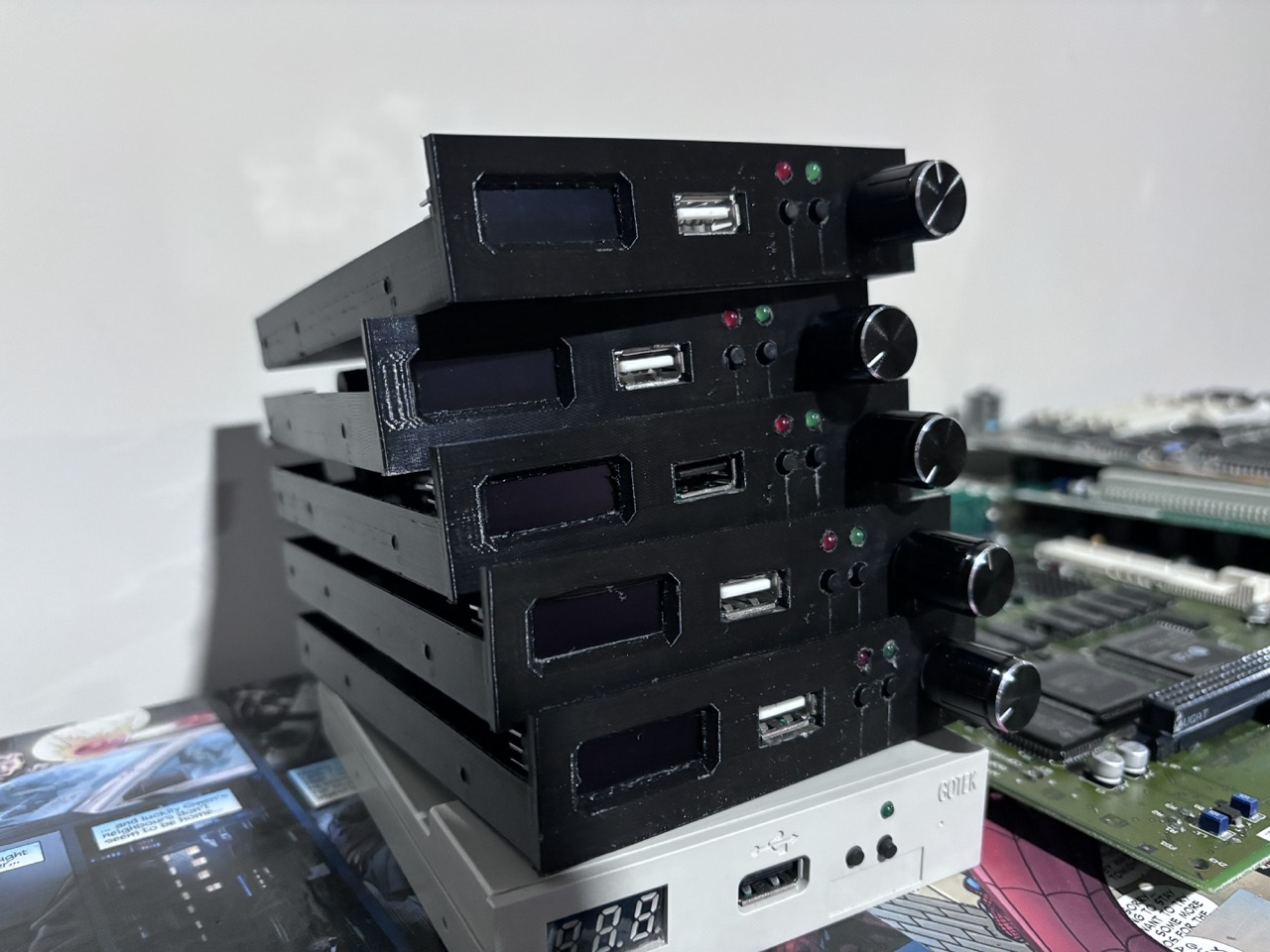 So I finally got sick of 3.5″ Floppy drives and modifying the aliexpress gotek clones so i built some of OpenFlops clones that have the OLED screen and rotary encoder in the them and swapped all my machines over.