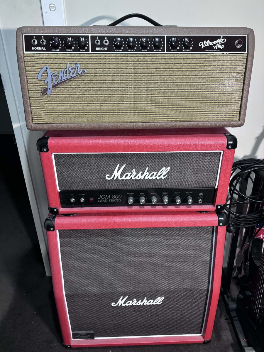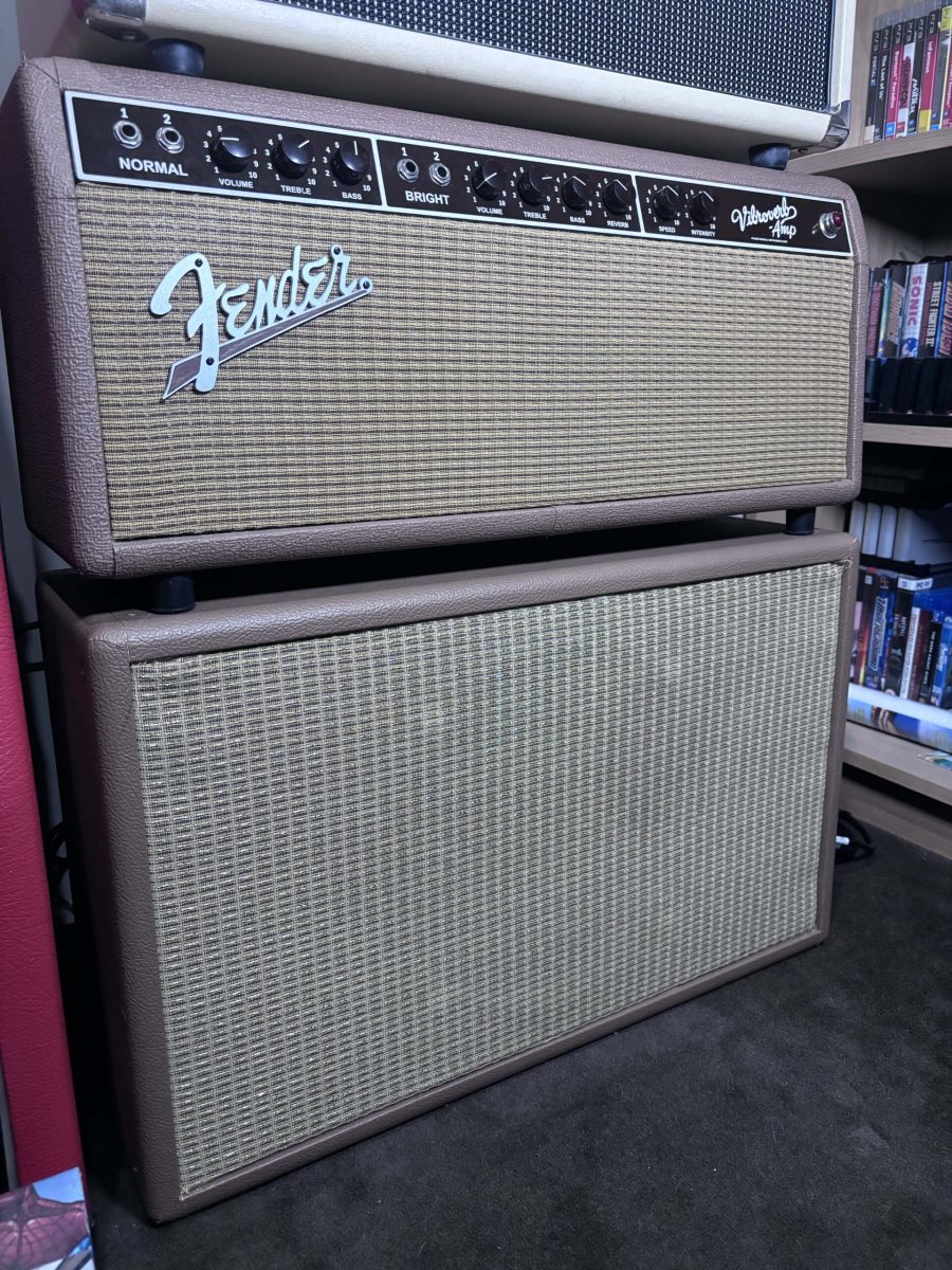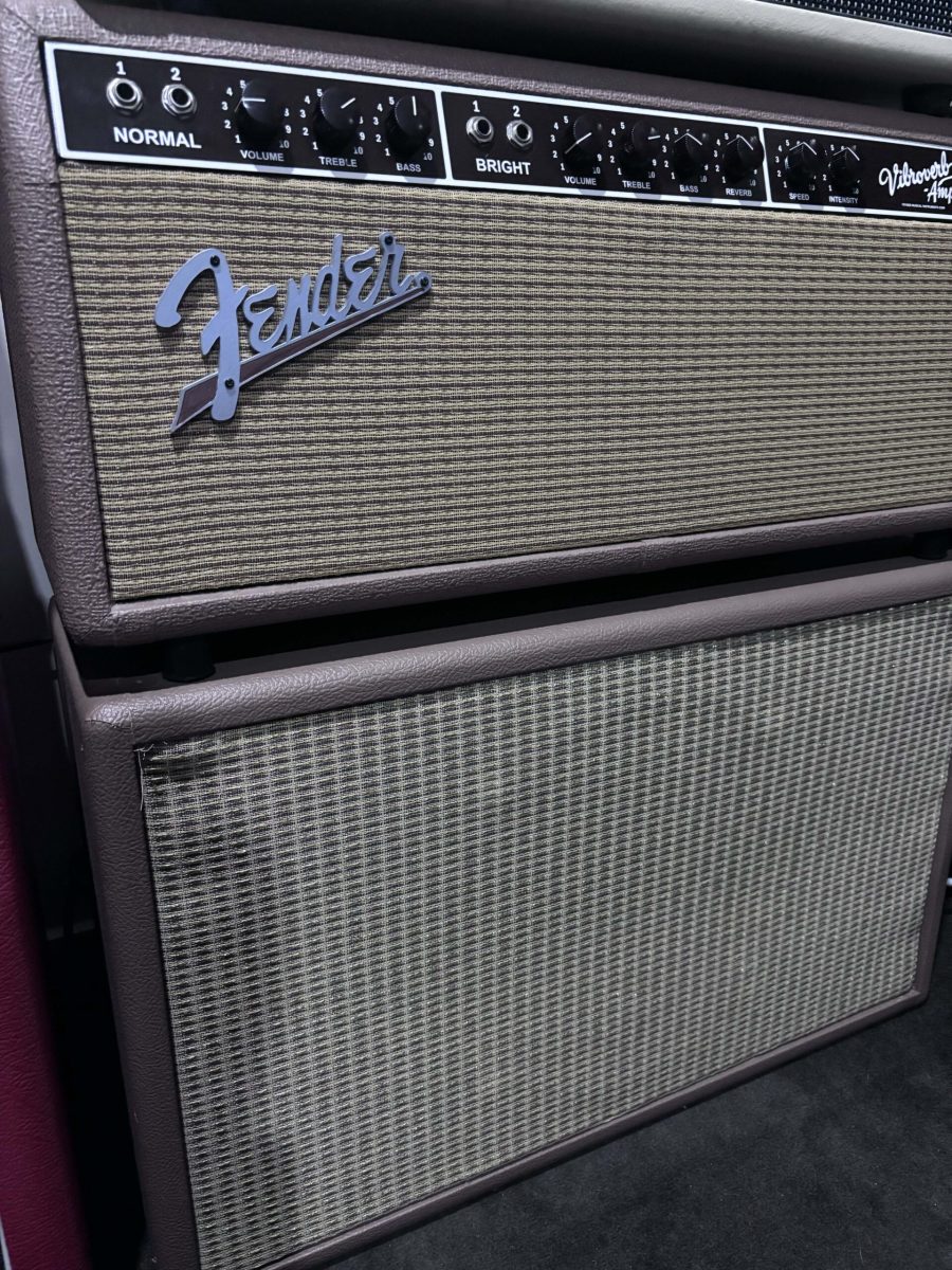 Luckily, my dad had some old his old vibroverb head and extension cabs sitting around and all I needed to buy was the hardware to go on them and I already had some old laser cut badges in a box from my fender champ project.