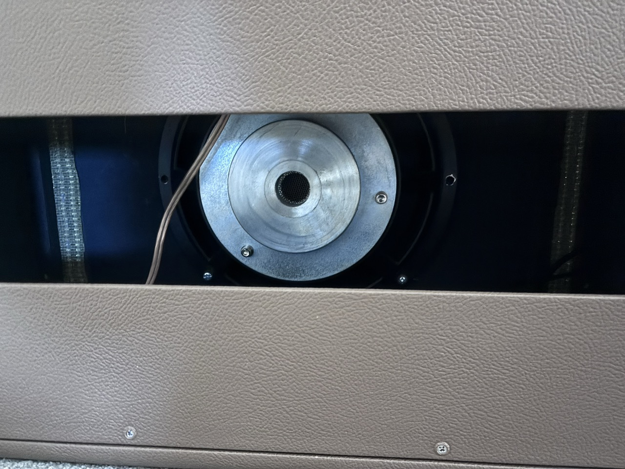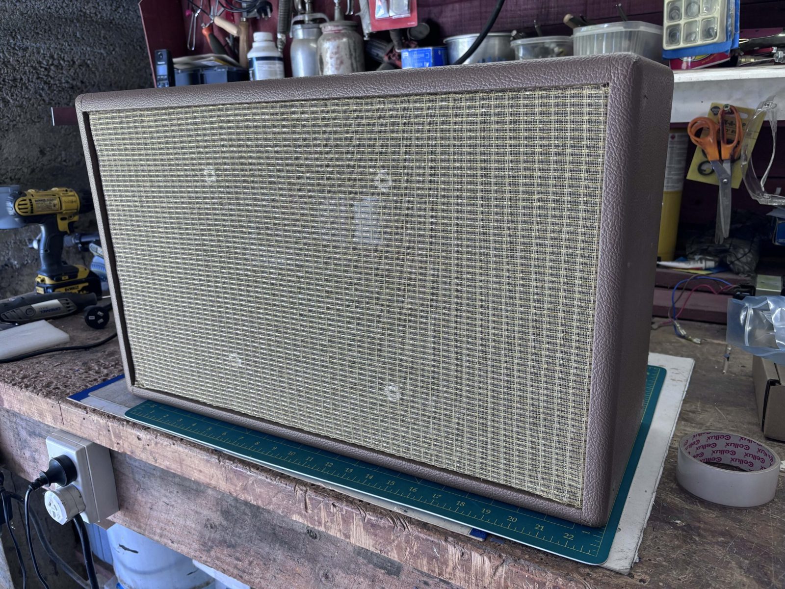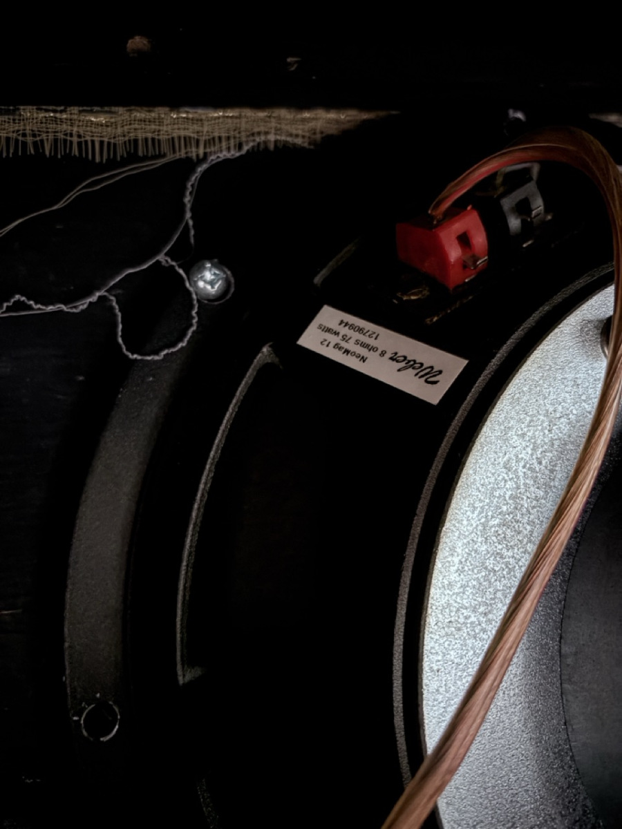 Once it was all working I buttoned up the missing cab parts and found a weber 12″ speaker to fit the extension cab from my dad, it should 2×10″ but again, i used what I had or what was available. I do want to create a 2×10″ baffle and redo all the grill clothe as it doesnt match between the head and cab but that is a fairly minor concern at the moment, it works and thats all that matters.