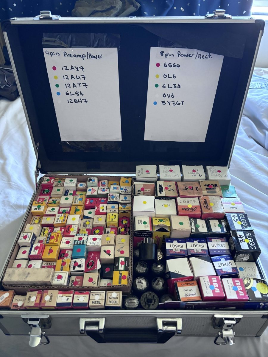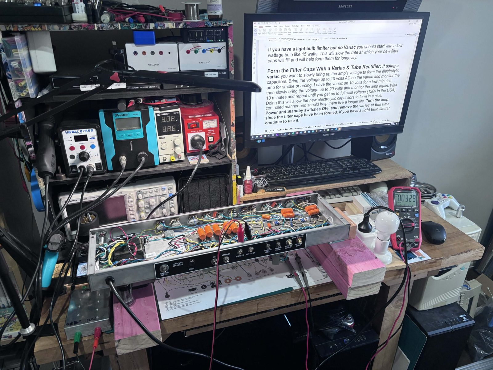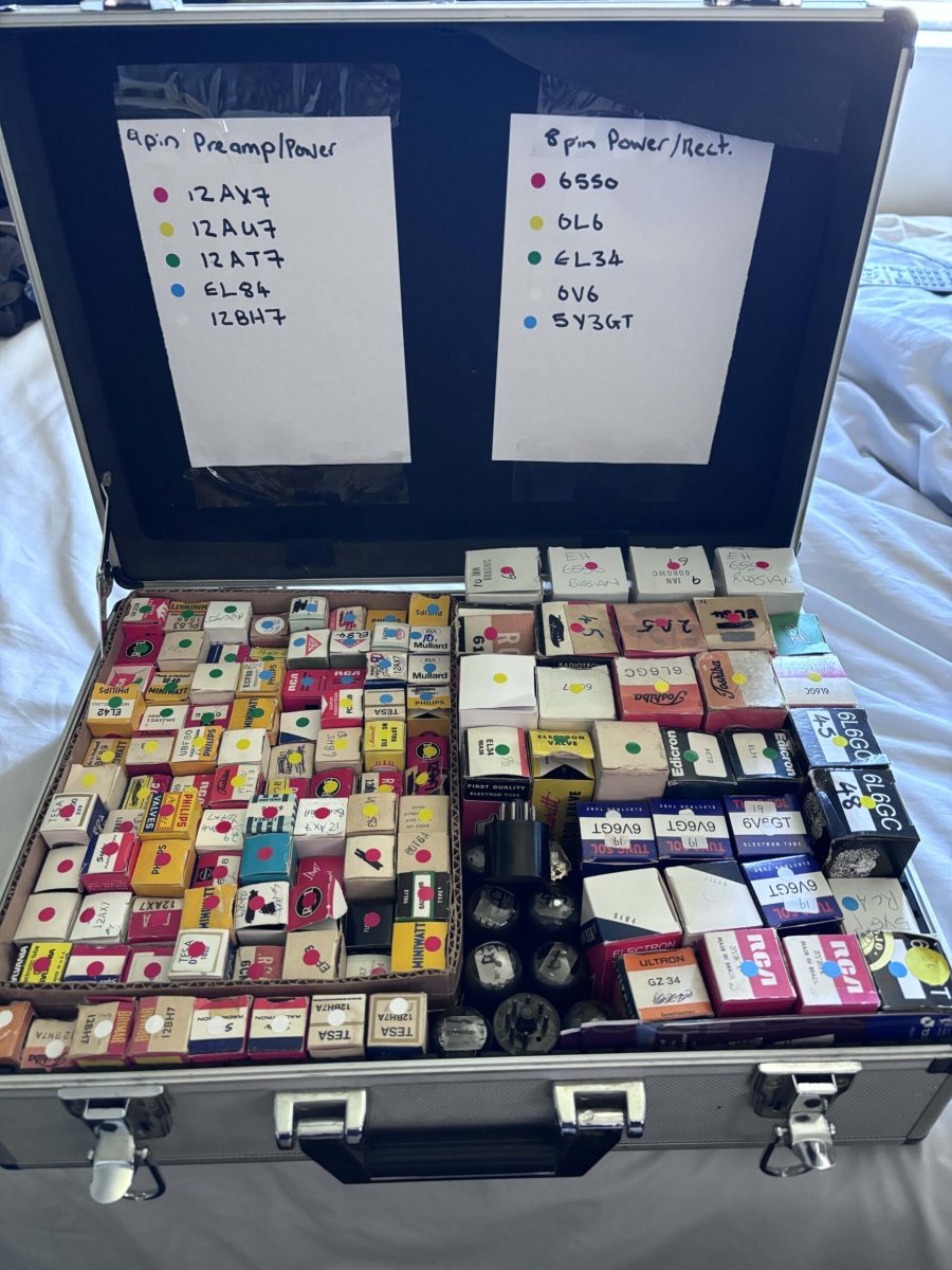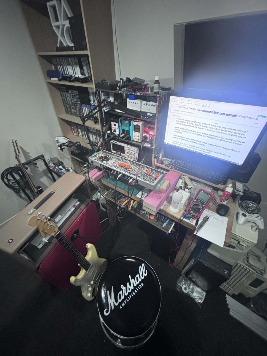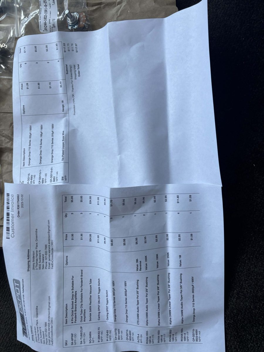 Most of the parts came from Tube Depot or Mojotone, for me I had to make sure I ordered the correct international voltage transformers and I managed to buy them when the exchange rate wasn’t entirely awful. Most of the caps are new except I opted to use some old mustard caps I had in the stash where I could. I followed the main wiring diagram with not much changes except I added in some extra fuses, omitting the ground switch and wired the speaker outputs slightly different. I originally used toggle switches for the Vibrato and reverb pedal switches but later changed them to the correct RCA jacks due to induced noise.