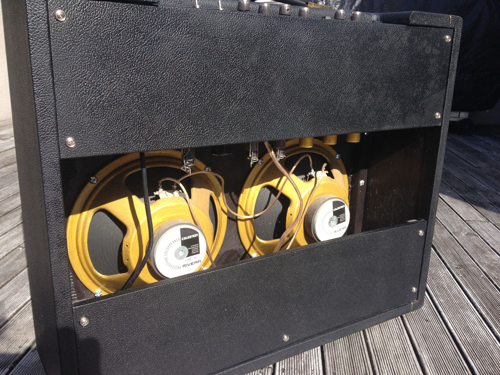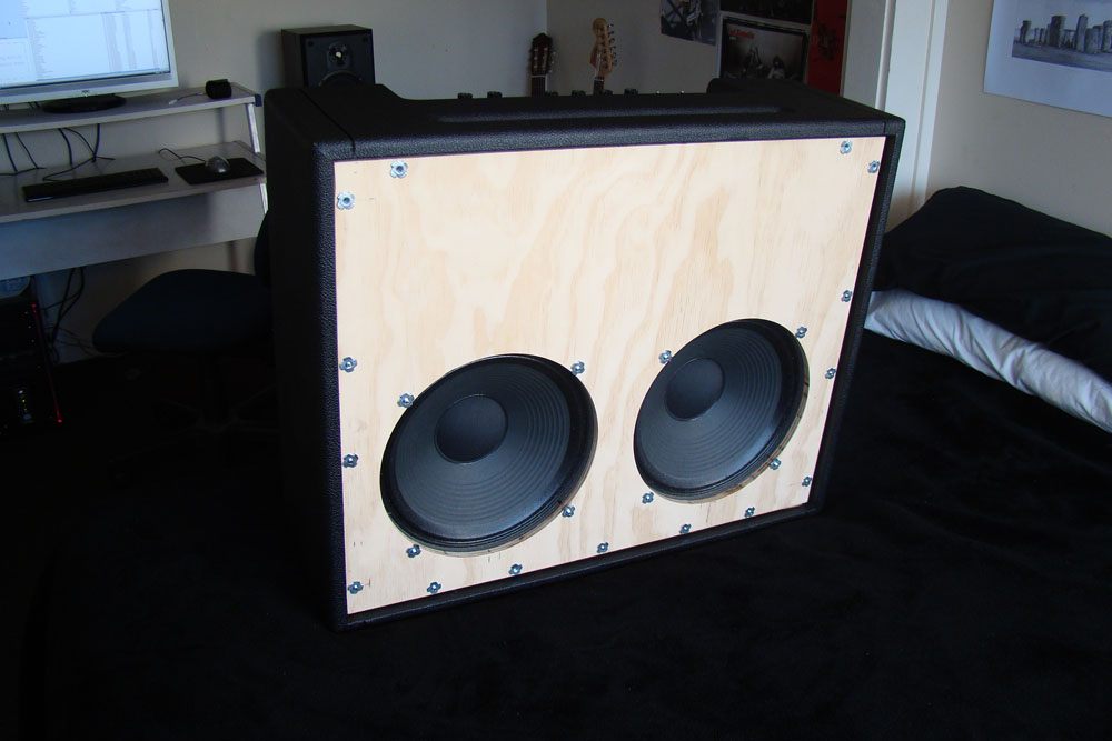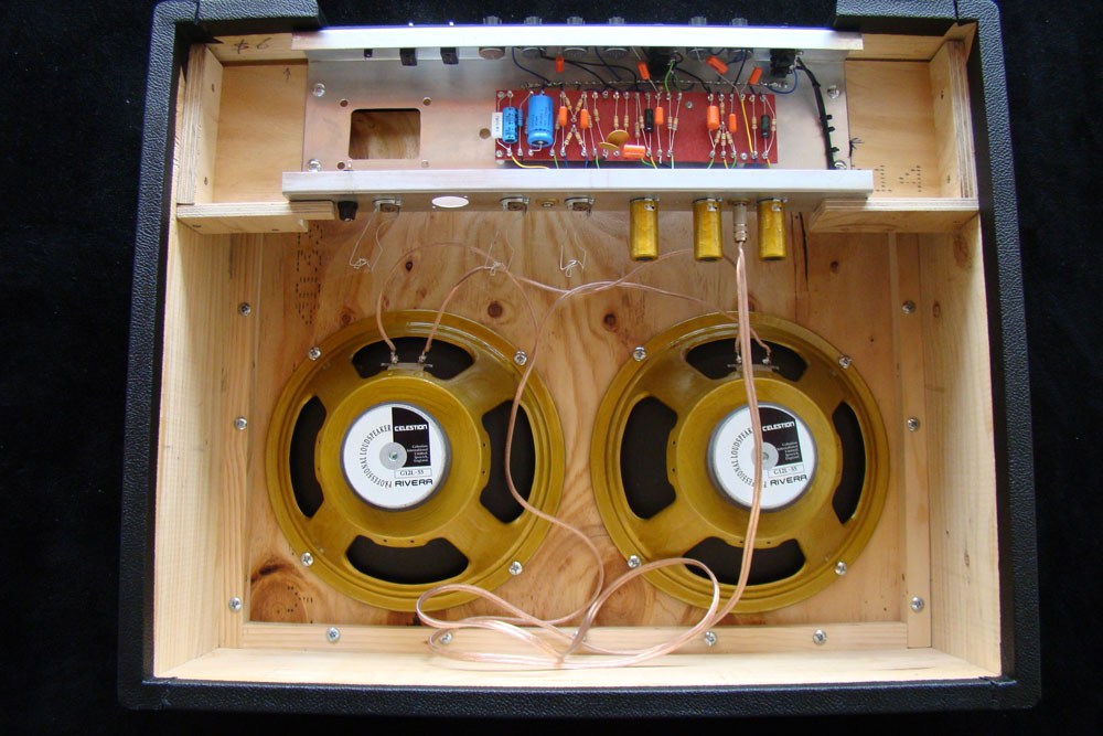 Sourcing the schematics and wood was the first task. I ended up building mine to the physical specs of the Marshall Bluesbreaker instead as I managed to find two Celestion G12L-55’s from and old Rivera cheap. The speaker baskets got a gold paint job as they looked pretty rough.