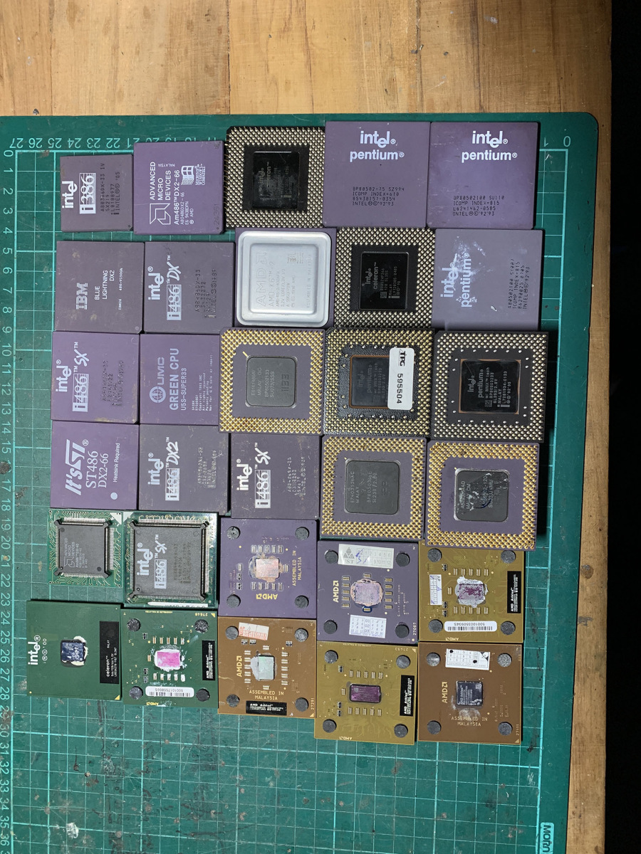 As a bit of a fluke purchase I spotted a listing for 3kg’s of CPU’s. Everything from Pentiums, 486’s, Pentium Overdrives and more. A lot of the chips had bent pins as they had clearly been sitting in a box/bin for years. It wasn’t overly cheap but I managed to remove some of the double ups and get all my money back, essentially making my ones free. These chips will give me a good base to test from.