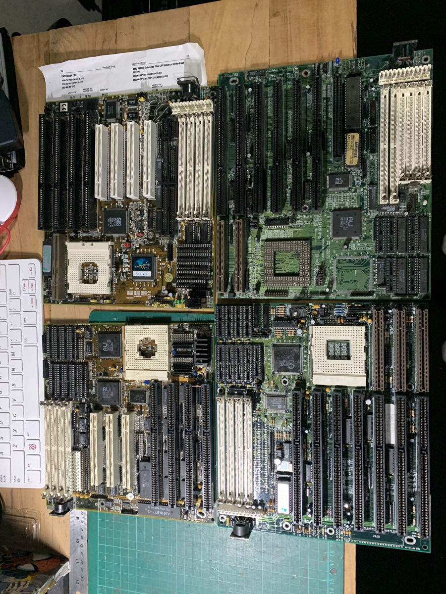The first round of testing went so so. A lot of the boards that I had were battery damaged. One of the the hardest parts of diagnosing these boards was actually finding the manuals to get the jumper settings for each board. Some of them I just couldn’t find anything on them so I had to resort to putting a less ideal chip in them to see if I got any post codes come up, if only to get a model number or something to be able to look up. I did managed to get 4 boards going on this round.