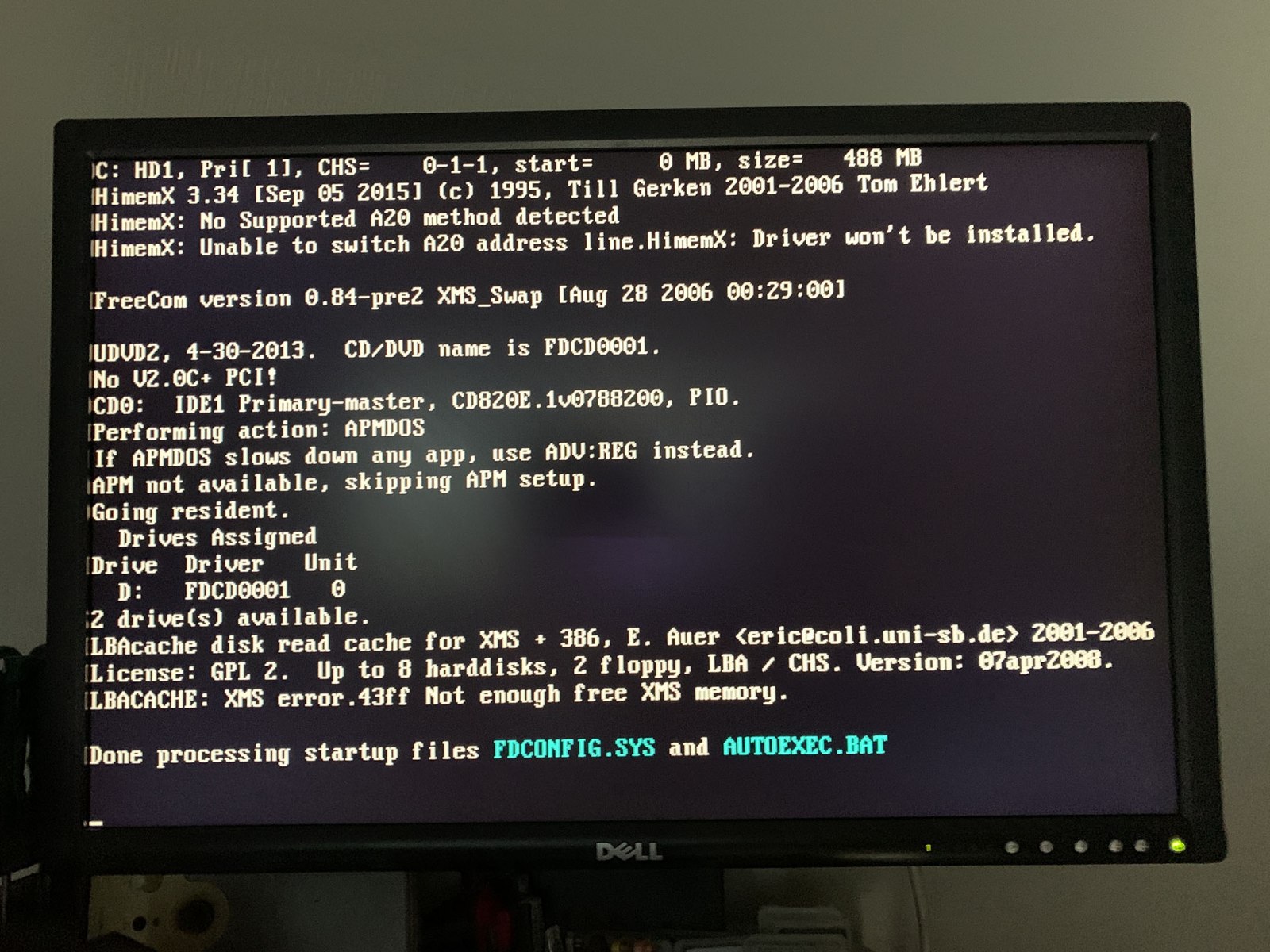 Once I had two boards working for the two cases I picked up I loaded up my DOS image and got everything working.