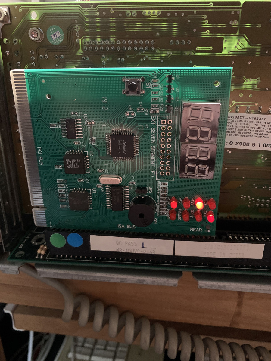 So it was a good second round of repairs. Sadly I still had 3 boards that showed no signs of life. They all showed power, and the bios read good but the reset line just stayed high and the post code reader showed 00. Something that I found out this time around was that the 4 digit post code readers actually are just two 2 digit readers, with the ones on the left being the current code and the ones on the right being the previous code. This made diagnosing it much easier as I could actually look up the code and know what the issue was ( like things in the 80’s being keyboard related and low error code being ram issues ).