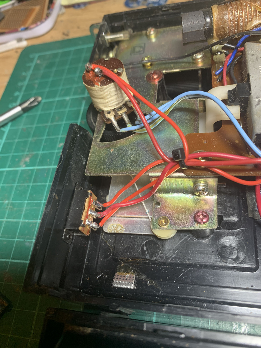 The wiring up of everything wasn’t actually too hard, just a matter or find all the power, ground and speaker points to intersect. One thing I did do was connect in a slider switch and mounted it on the side of the unit to change between the original radio and the new bluetooth unit, to hopefully stop as much interference as possible. It works but switching the power for each. The original power switch on the volume knobs is retained in both.