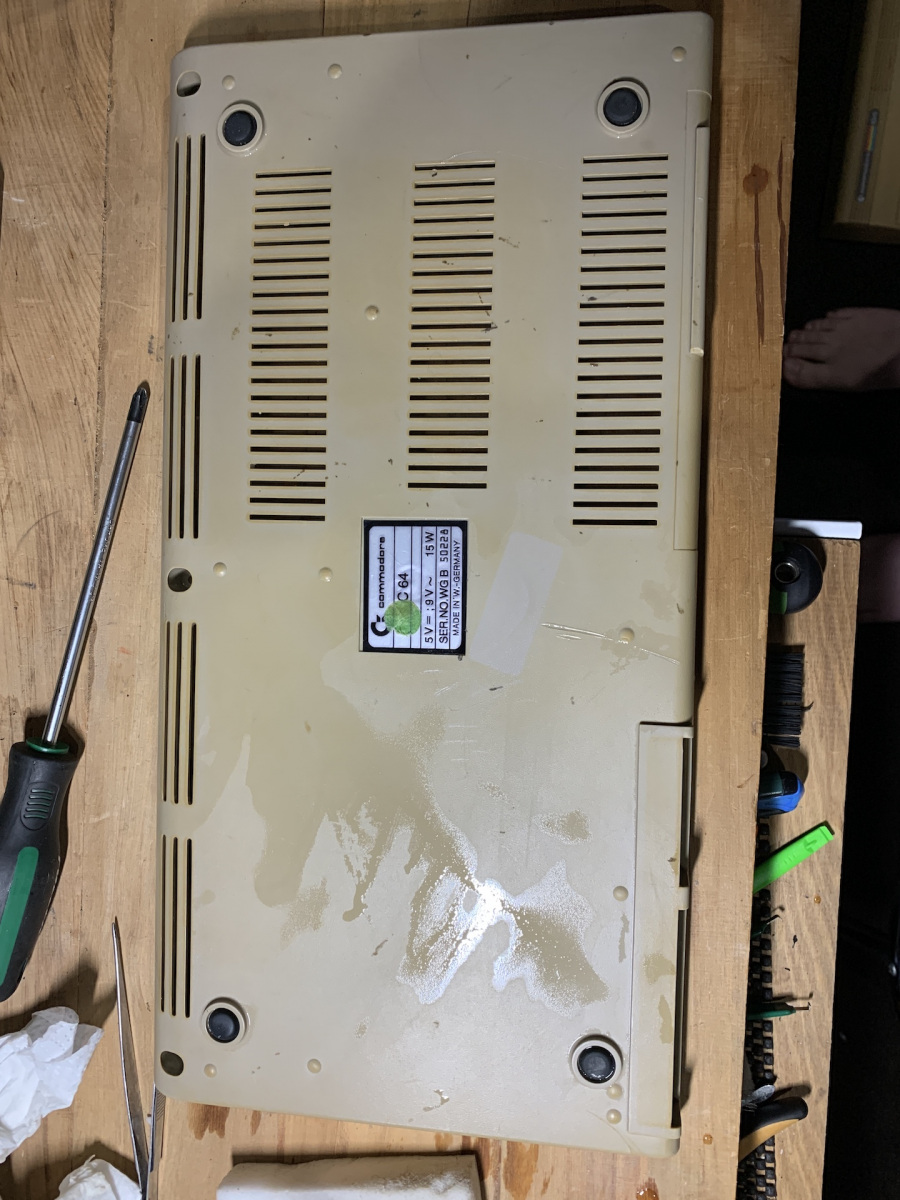 I got this in a VERY yellow state a couple of years ago and it was all working fine then. But I had recently got it back out to play with it as I had discovered the IEC2SD project and the 8 Bit Guy’s games for the unit, so seemed like a good reason to try it all out properly. The case was fairly grubby and had a small nick/dent in the top of the vents ( which would haunt me later ).