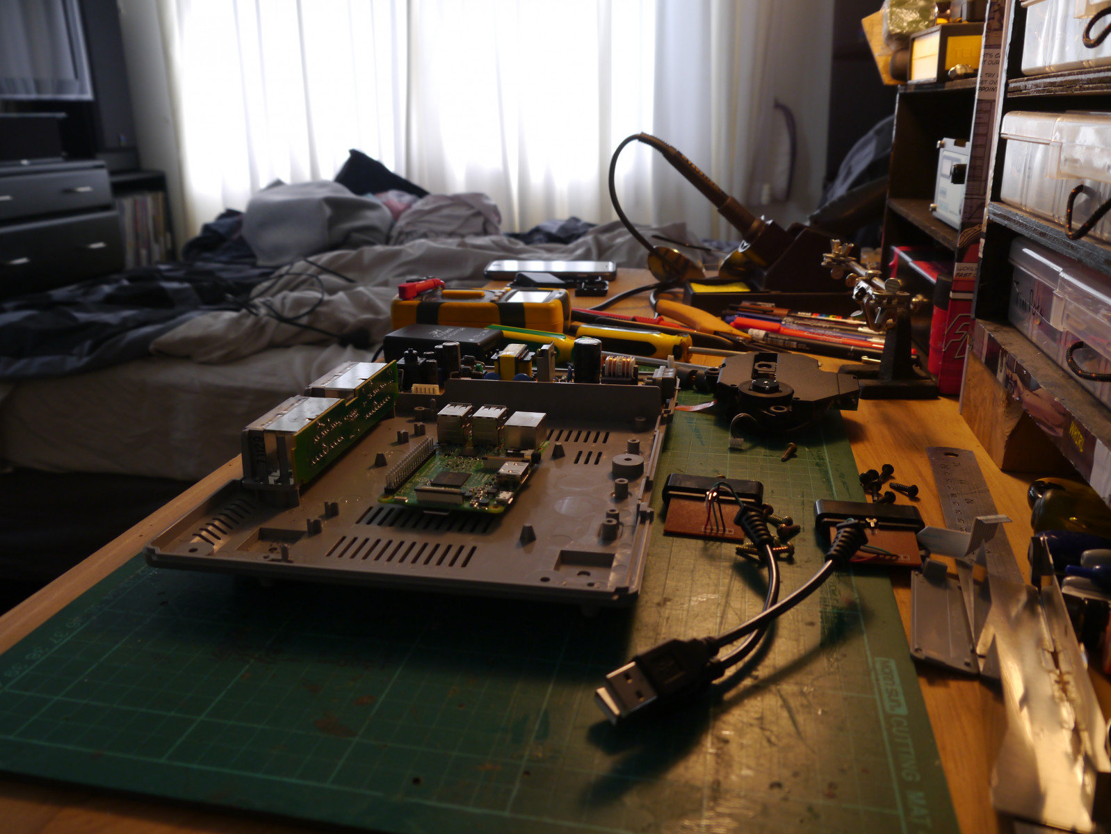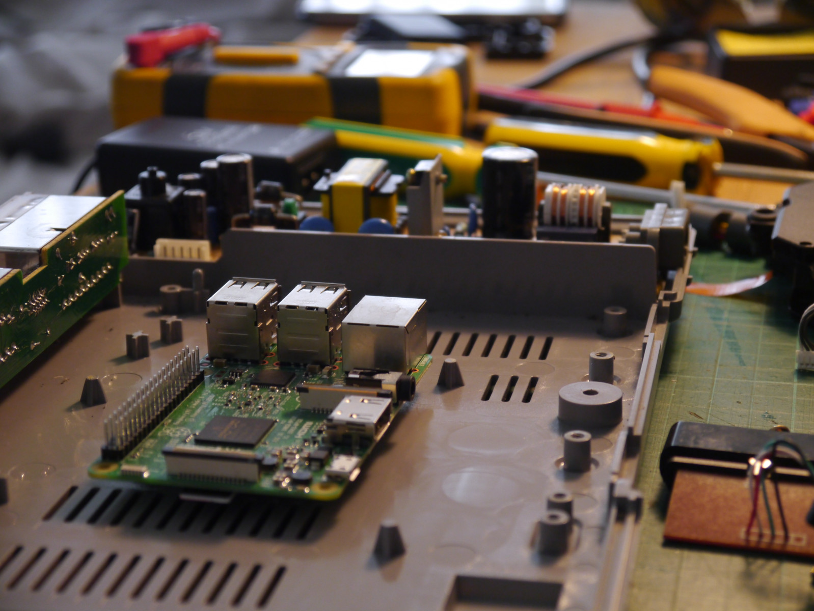 Seeing all the Retropie projects online got me looking at how I could put together one of my own but with a bit of a twist. I have seen a few people build a Raspberry Pi RetroPie rig inside a playstation shell before but they always used USB ports on the front for controllers, something I didn’t want to do. For me the main attraction of doing this project was to make it very hard to tell that it was NOT a Playstation PS1, so it had to have PS1 controller ports on the front of it. I opted for gutting/ruining one of the PS1’s I had that had a dodgy eject switch and no RCA outputs on it. I kept all the parts I removed for spares.