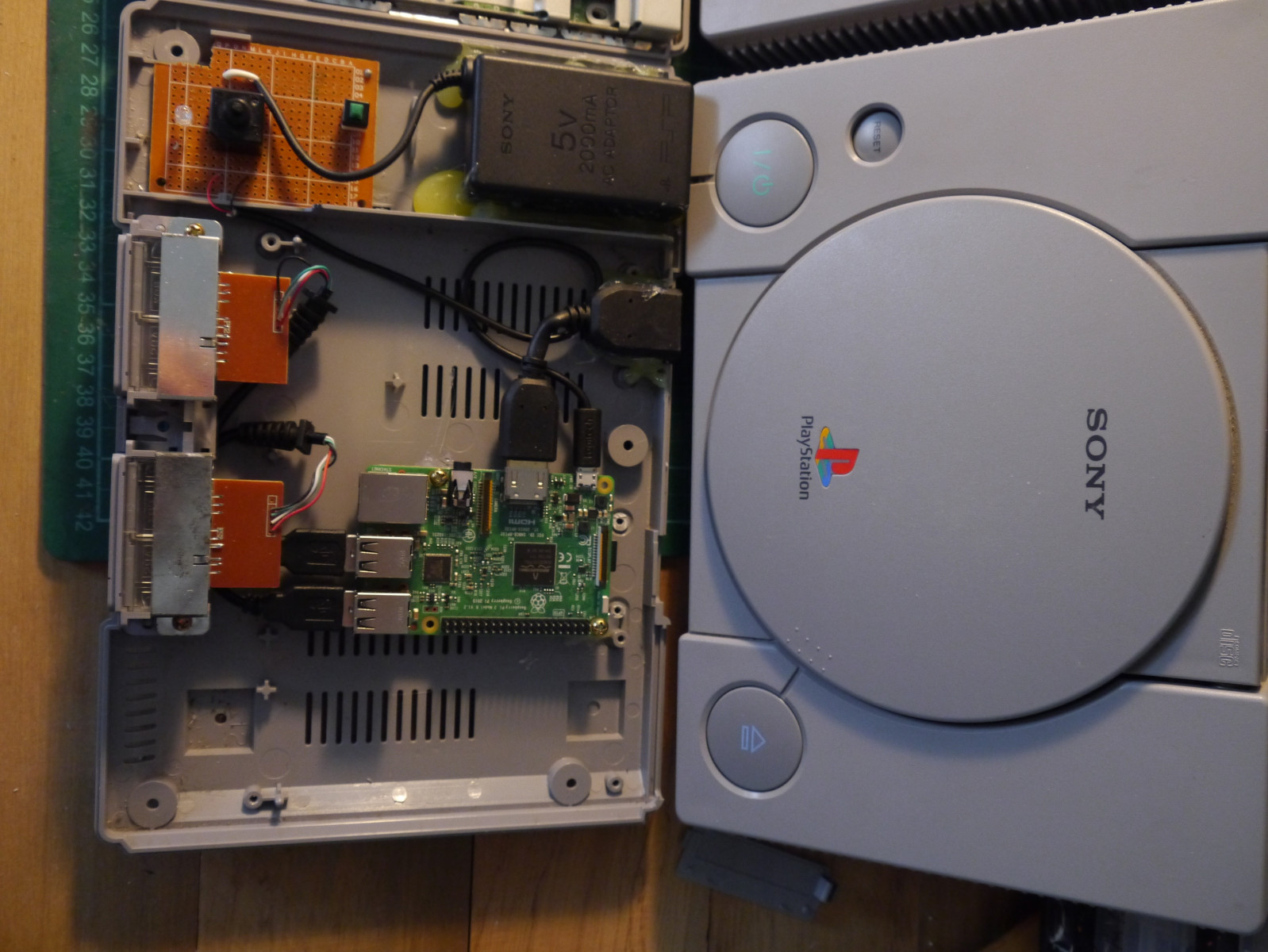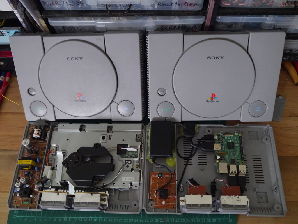 From the outside you would never know it was a Raspberry Pi on the inside except for the HDMI port on the back. Here is a side by side of a real PS1.
