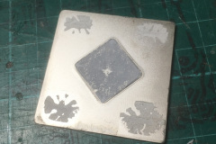 Now this is the hardest part of the whole project, getting those IHS ( integrated heat spreaders ) off the dies. I followed ( roughly ) the directions of MSC Mods on how to do this, but I instead used a 0.15mm feeler gauge with sharpened edges to cut the silicon on the outside of the dies. I definitely recommend preheating them IHS’s before doing this and take your time, it is not an easy process. Once they let go, its just a matter of cleaning everything up.