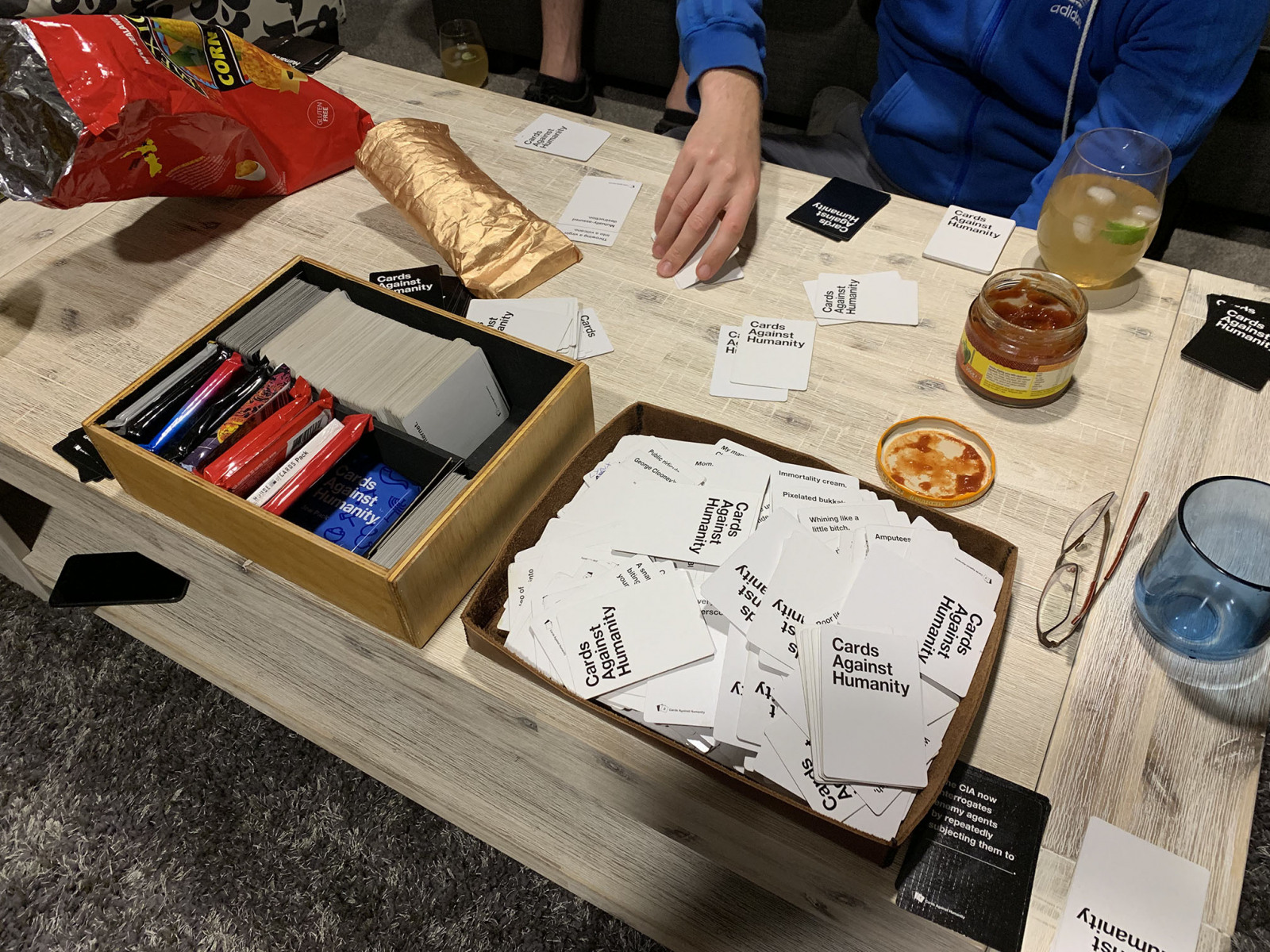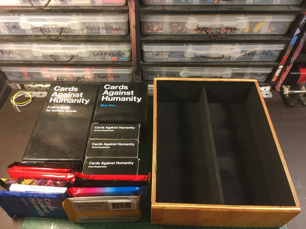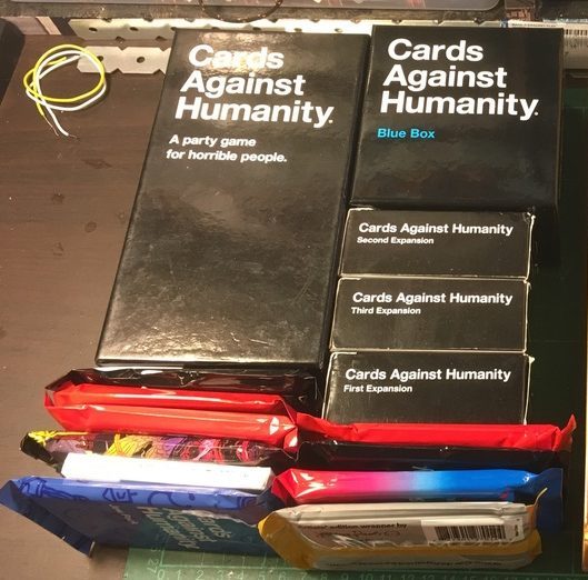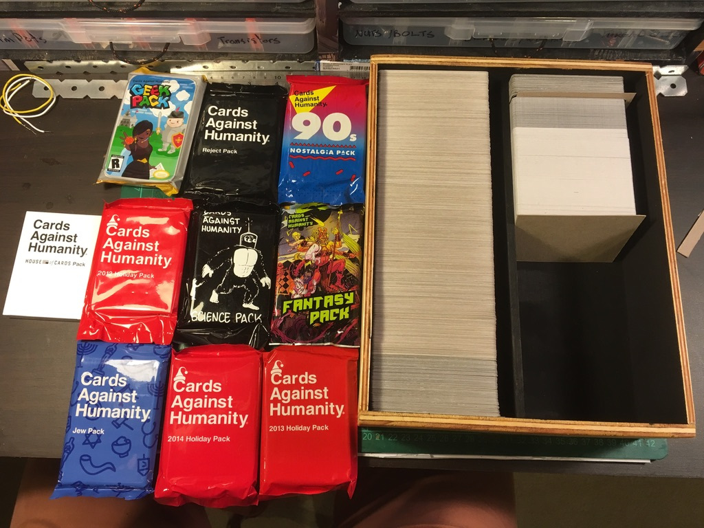 As did most people, around 2015-2016 I got introduced to Cards Against Humanity, one of the best party games ever. But unlike everyone else, I always go over board when I get into something new. So when I got hooked to the game a went a purchased every single expansion pack plus the base pack I could find. This was great for having virtually new games every time you played it but incredibly frustrating to lug them around.