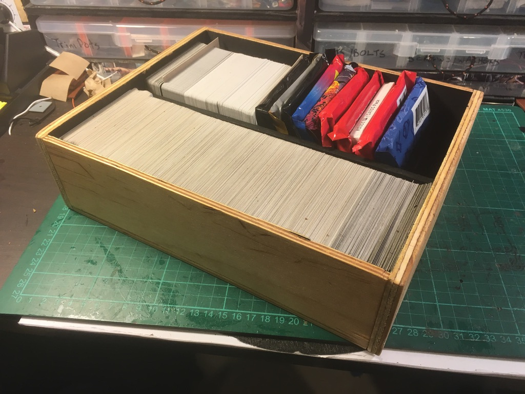 All said and done this was a quick weekend project to tidy up these cards ( Adam Savage one day build style ) and have a nice box to carry these around to parties. Hopefully the leather weathers and ages well!