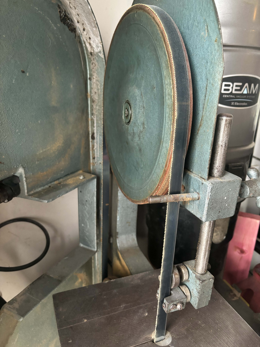 Getting a blade for this thing was much harder than expected. It turns out modern bandsaws use different blade sizes. The bandsaw has a fair amount of adjustment in it so I got the closest blade size of hardwood/soft metal I could find and made it fit.